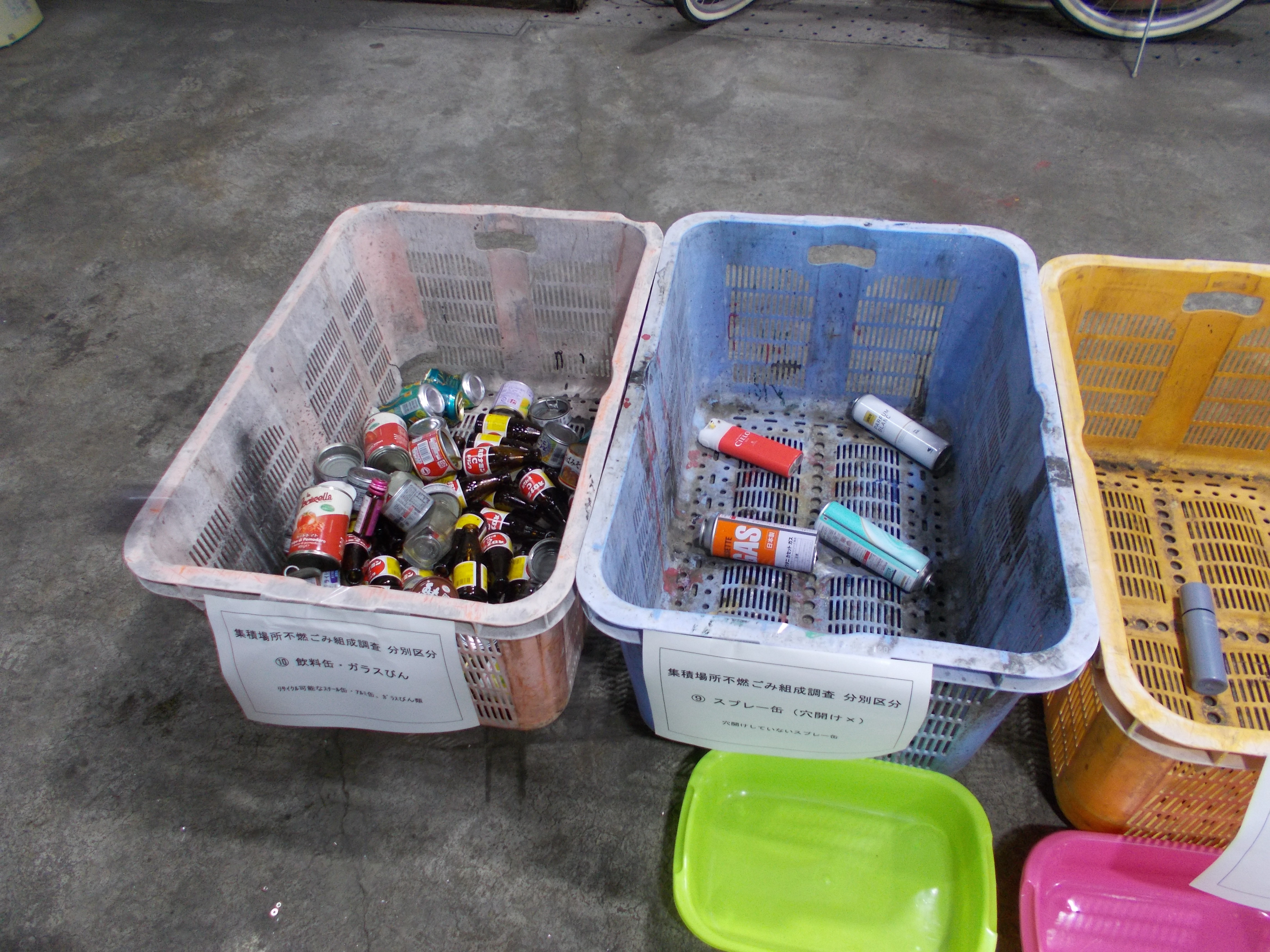不燃ごみの中にどのくらいリサイクル資源や火災の原因となるスプレー缶・電池類などが入っていると思いますか。市では、不燃ごみの中身を調査し、どのくらいリサイクル資源や火災の原因となる危険物が入っているかを把握する組成調査を行いました。(個人情報には配慮しています。)