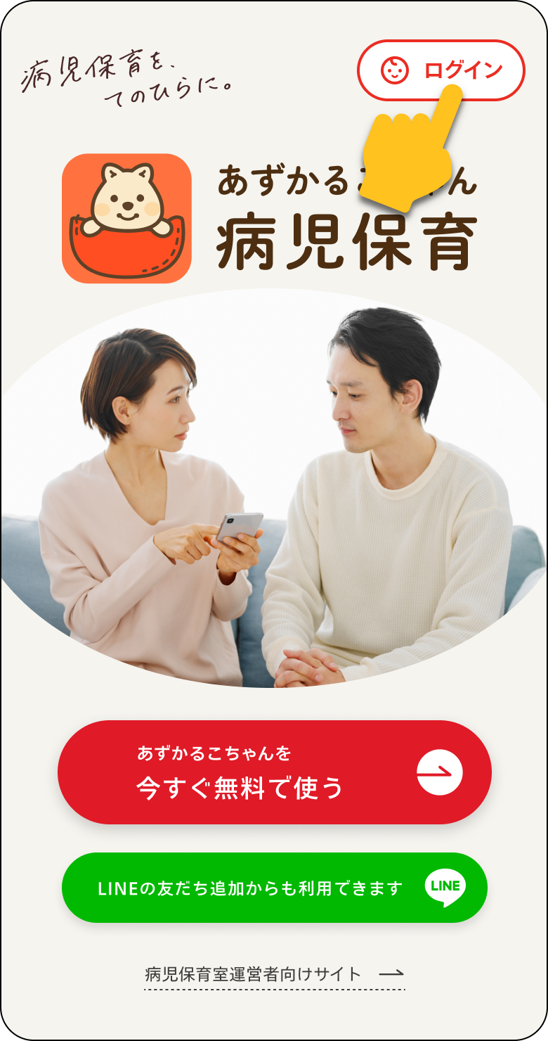 - あずかるこちゃんのwebサイト別ウィンドウで開くに表示されている「ログイン」をタップ。